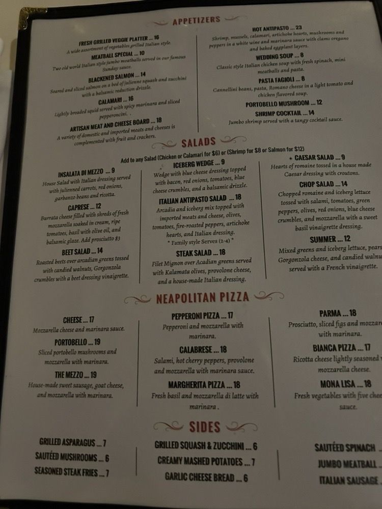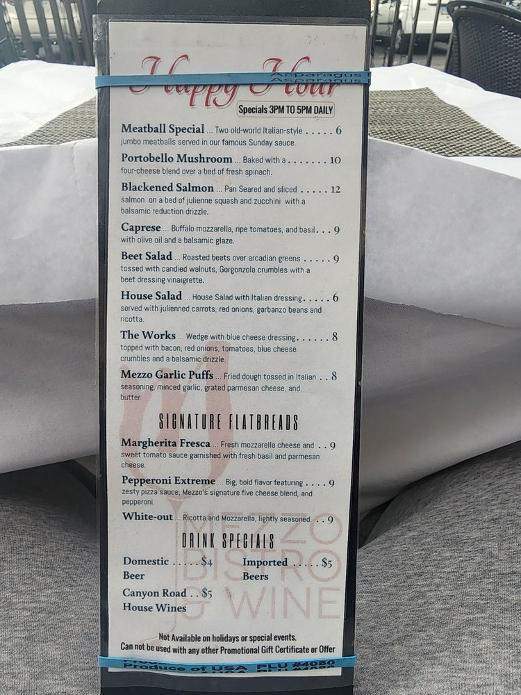 Mezzo Bistro and Wine, a charming Italian wine bar in Las Vegas, offers a variety of appetizers, salads, and pasta dishes. The Fresh Grilled Veggie Platter and Artisan Meat and Cheese Platter are standout appetizers. For salads, the Caprese Salad and Beet Salad are highly recommended. When it comes to pasta, the Meat Lasagna and Orecchiette Calabrese are must-tries. Customers rave about the romantic and cozy atmosphere, delicious food, and generous portions. Some highlights include the Meatballs and Hot Antipasto appetizers, as well as the House made 3 cheese lasagna. Overall, Mezzo Bistro and Wine is a gem for Italian cuisine lovers, offering a delightful dining experience worth revisiting.