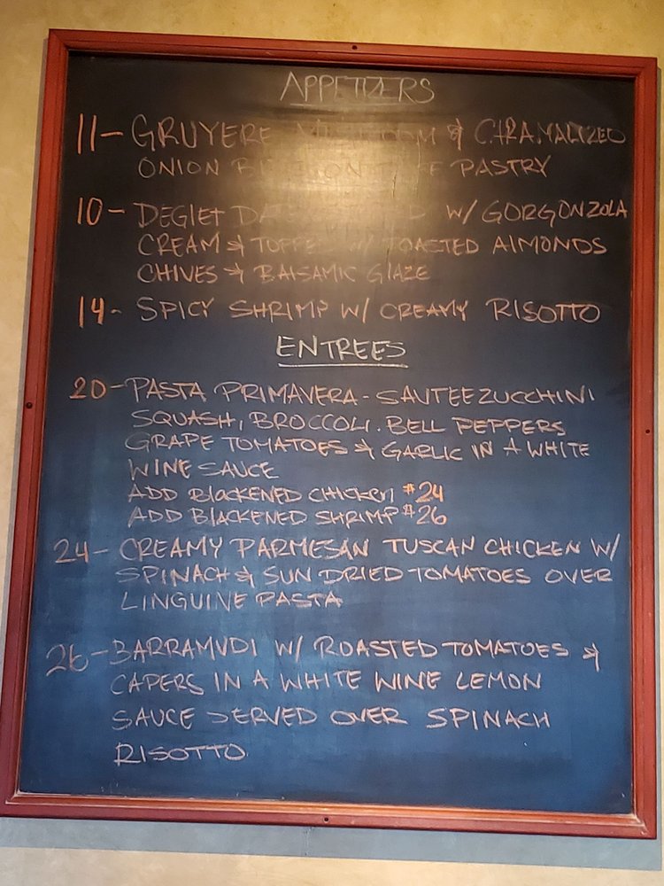 Thinly sliced chicken breast sauteed in a white wine sauce with carrots, red onions, spinach and artichoke hearts served over penne pasta.